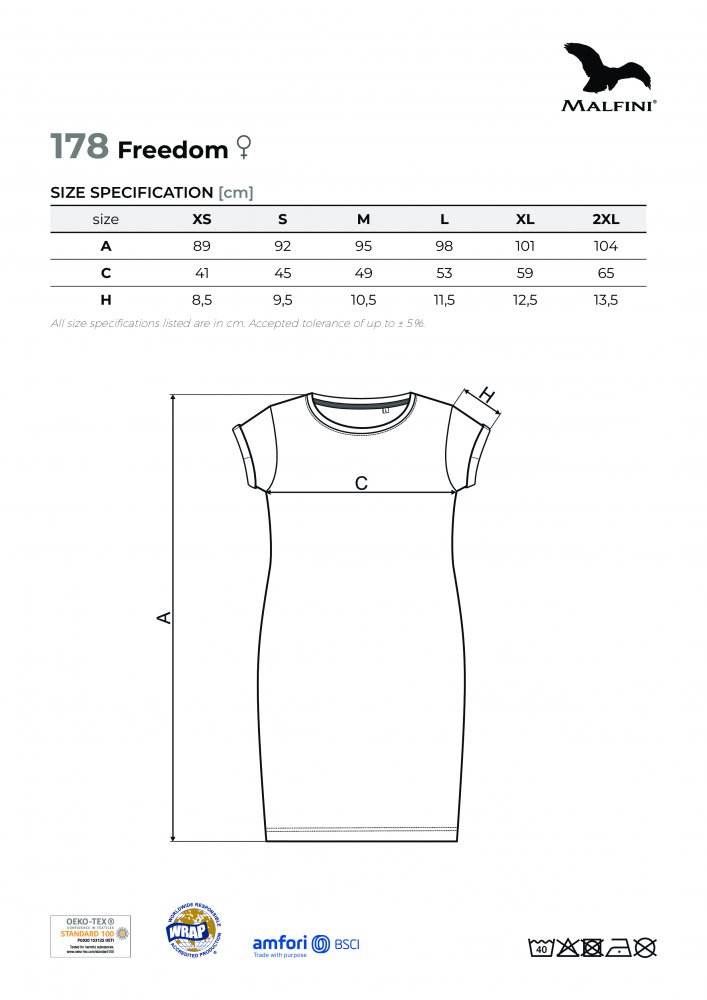 Šaty mají tričkový lehce vypasovaný střih, který příjemně zvýrazní ženskou postavu, délka nad kolena a hlubší kulatý výstřih .