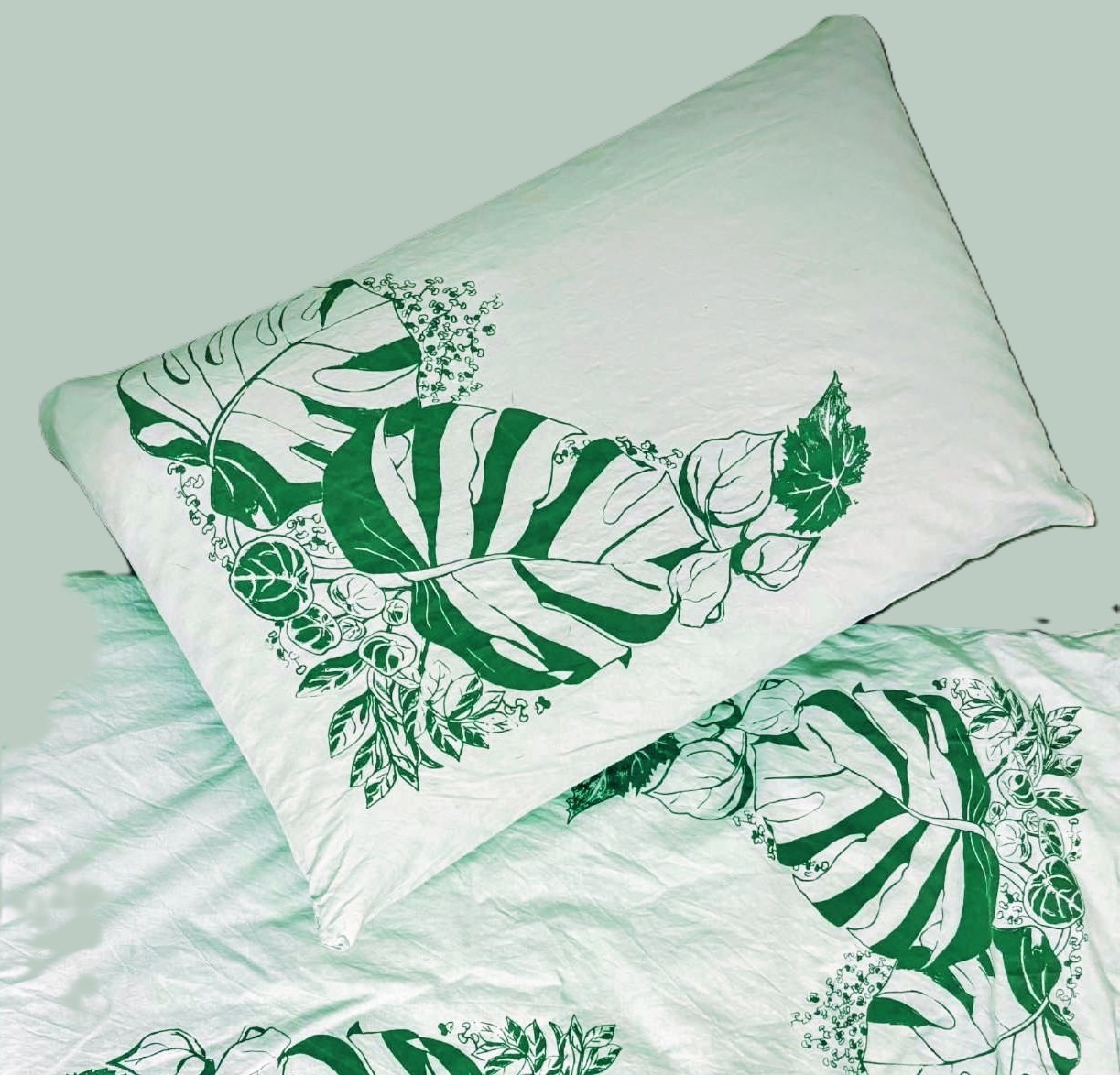 Pro milovnice pokojových rostlin jsem vytvořila toto originální povlečení s námětem populární monstery.
