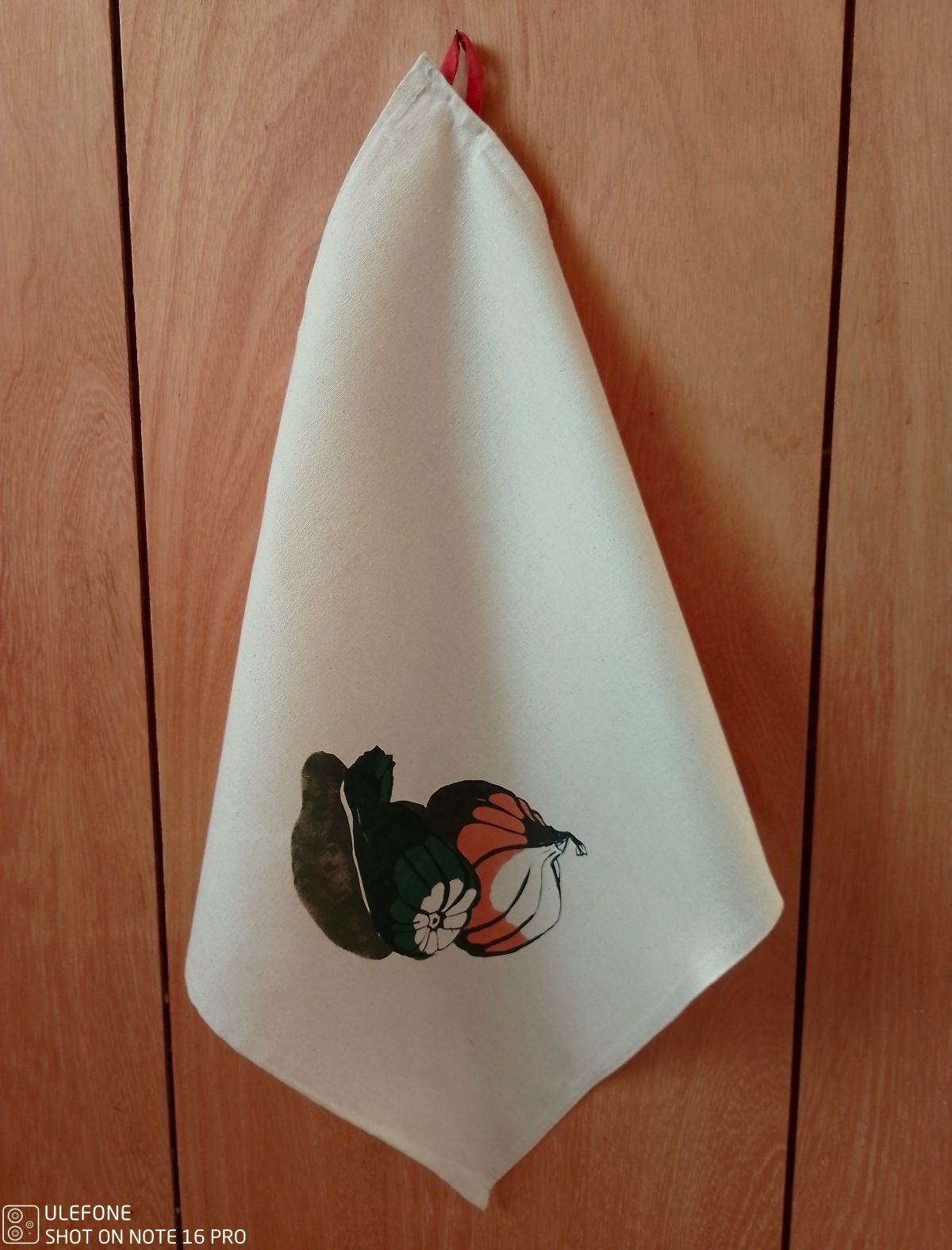 2x Kuchyňskou utěrku vyrobenou ze 100% recyklované bavlny o gramáži 200 g/m² s poutkem.