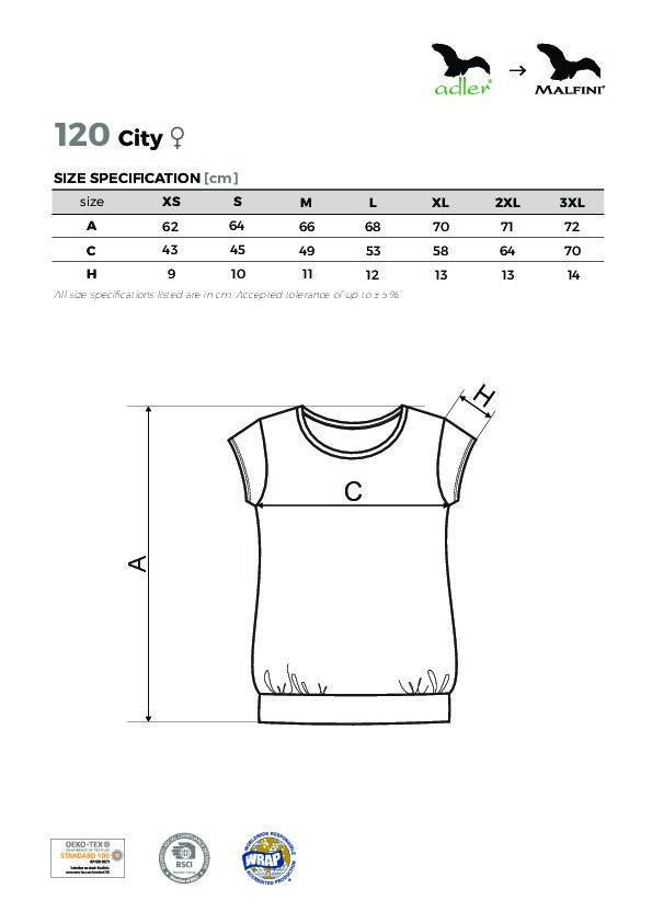 Tričko má volný střih s bočními švy, široký lem dolního kraje z vrchového materiálu, rukávy kratší délky